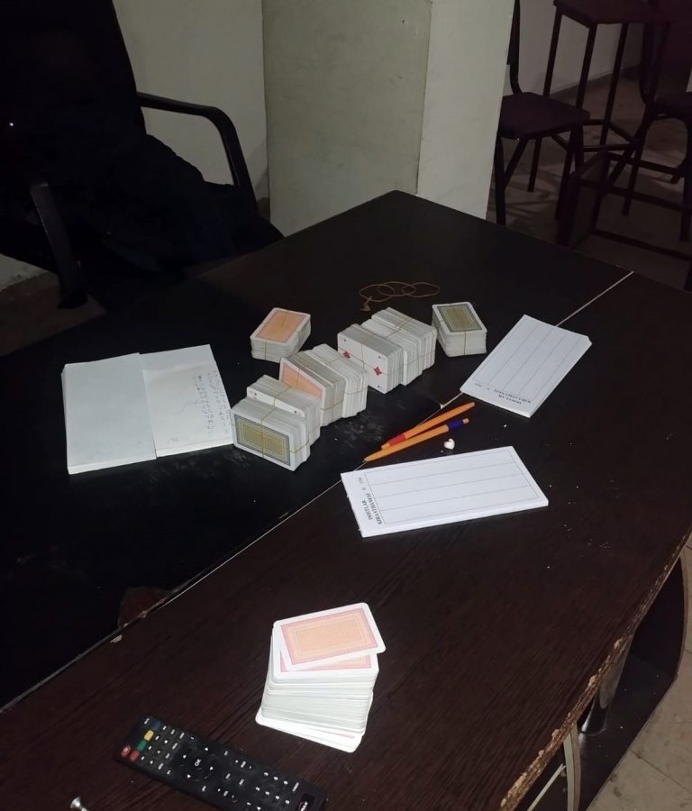 Gece yarısı gerçekleştirdikleri operasyonda kumar oynayanları suçüstü yakalayan ekipler, çok sayıda oyun kağıdı, para ve pulları ele geçirdi.