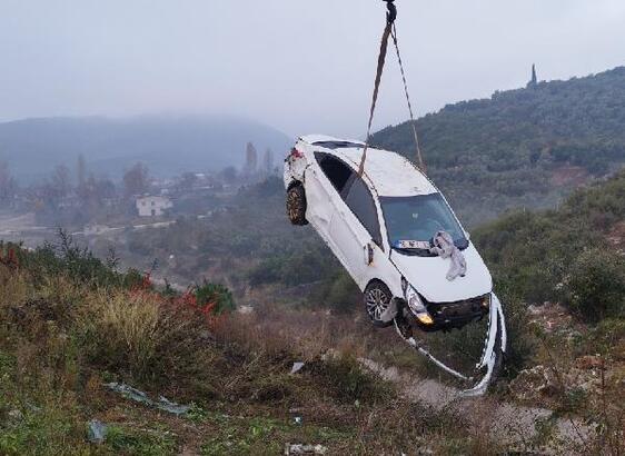 Bursa'da otomobil bariyerleri aşıp şarampole uçtu: 4 yaralı
