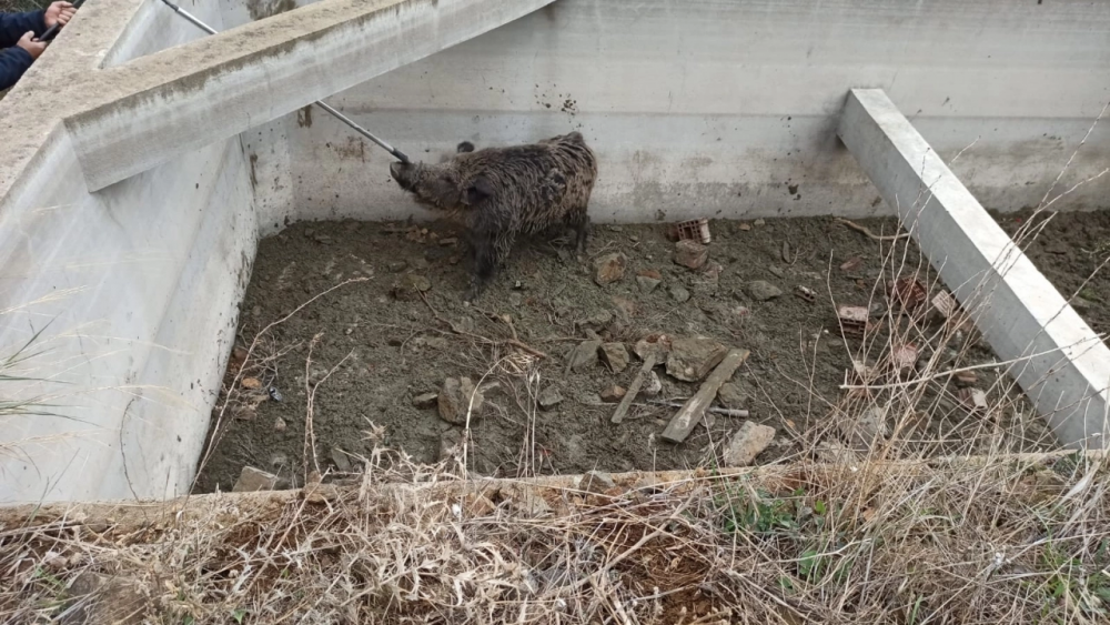 Bursa'nın Gemlik ilçesi Narlı Mahallesinde zeytinlik alanların sulamasında kullanılan havuza düşen yavru domuz, saatlerce kurtarılmayı bekledi. Bir vatandaşın ihbarı üzerine olay yerine gelen Gemlik Belediyesi Sağlık İşleri Müdürlüğü ekipleri yavru domuzu ilk önce iğne ile bayılttı. Daha sonra itfaiye ekiplerinin de yardımı ile düştüğü havuzdan çıkartılan yavru domuz doğaya salındı.