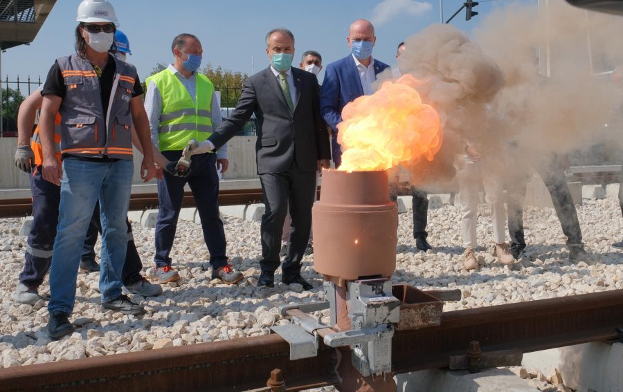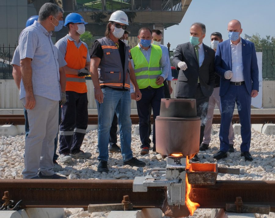 Rayların yapılmayan kaynak imalatlarının tamamlanması için devam eden çalışmaları dikkatle inceleyen Başkan Aktaş, ilk kaynağın ateşlemesini de bizzat kendisi yaptı. "Kent Meydanı - Terminal Tramvay Hattı (T2 hattı) inşaat tamamlama işleri" ihalesi kapsamında; hat üst yapısındaki eksik ray kaynakları, ikinci tabaka balast, S49 raylarının gerdirilmesi, buraj yapılması, makas montajları, makas kaynakları, eksik betona tespitli hatların yapımı ve balastlı hat eksik prefabrik kablo kanalı montajı yapılacak. 9 adet üstgeçit istasyonun solid polikarbonat, membran kaplama çatı örtüsü, asansör ve üst geçit prekast cephe kaplama, teknik hacim dış cephe klinker kaplama, üst geçit kompozit panel kaplama, asansör dış cephe kompozit panel ve cam kaplama, 2 Nolu istasyon çelik imalatı ve montajı, kauçuk kaplama, paslanmaz korkuluk, kompozit kaplama imalatları yapılacak. Bunun yanı sıra trafo ve istasyonlarda teknik hacimlerde klinker kaplama ve karo kaplamaları imalatları yapılacak. Hat yolu üzerinde eksik katener direkleri montajı, katener temel imalatları ve hat yolu eksik drenaj çıkışlarıyla birlikte otobüs terminali drenaj hatlarının döşenmesi gerçekleştirilecek.