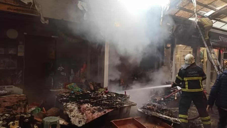 Bursa'da Tarihi Balibey Han Çarşısı'nda Yangın Çıktı