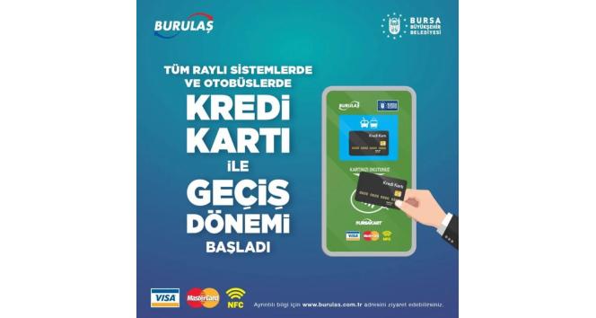 Metroda bekleme sürelerinin kısaltılması, toplu taşıma araçlarının modernize edilmesi gibi yatırımlarla toplu ulaşımı sürekli teşvik eden Bursa Büyükşehir Belediyesi, şimdi de metro ve validatör bulunan otobüslerde kredi kartı ile ödeme dönemini başlattı. Temassız ödeme özelliği olan Visa ve MasterCard kredi kartları ile NFC özelliği bulunan akıllı telefonlarla yapılacak ödemelerde, banka tarafından yürürlükteki komisyon bedeli alınacak. Tam tarifenin uygulanacağı kredi kartı ödemelerinde ulaşım ücretinin her 5 TL'ye kadar olan kısmı için 1 TL, 5 TL ile 10 TL arasında olan kısmı için 2 TL ve 10 TL ile 15 TL arasındaki ulaşım ücretine karşılık da 3 TL komisyon ücreti alınacak.