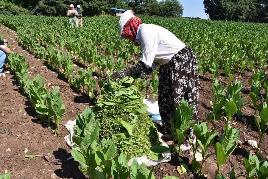 Çavuşköy Mahallesi'nde bu yıl 22 hane tarafından 200 dekarlık alanda tütün ekilirken, her dönümden ortalama 100 kilo mahsul alınıyor. Gencinden yaşlısına tüm ev halkı, sabah namazının ardından tarlaya gidip, hava ısınına kadar tütün kırıyor.