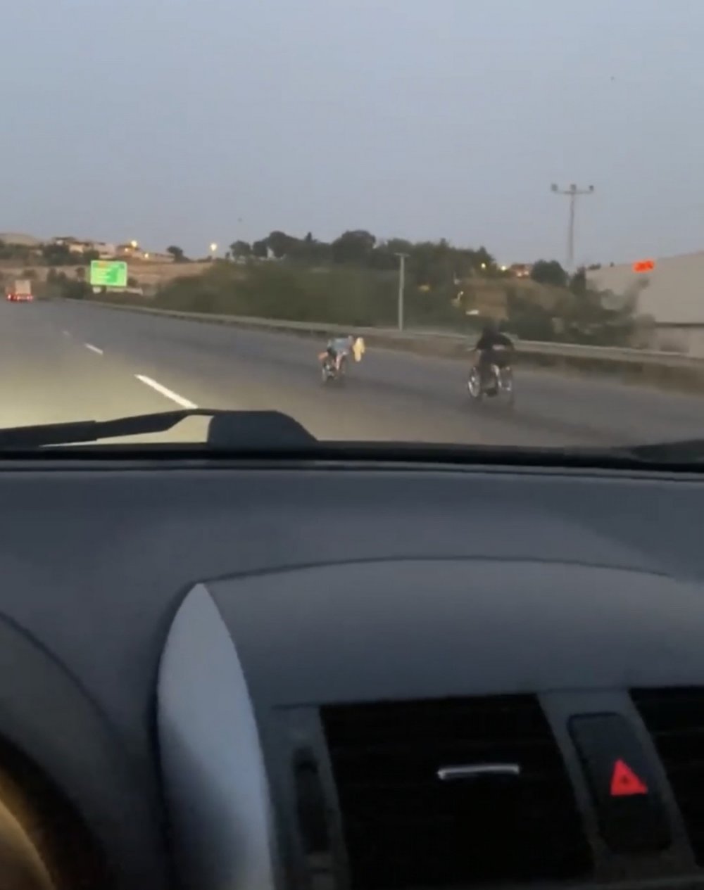 Olay, Bursa-İzmir oto yolunda meydana geldi. Ölümü göze alarak motosikletin üzerine yatarak ilerleyen bir sürücü, yürekleri ağızlara getirdi. Tehlikeli yolculuğunu 100 kilometre devam ettiren motosiklet sürücüsünü ve arkadaşını gören bir araç sürücüsü o anları cep telefonu kamerasıyla kaydetti.