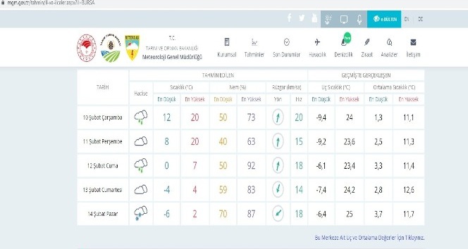 Bugün karla karışık yağmur beklenen Uludağ'da ise sıcaklığın en yüksek 6, en düşük 1 derece olacağı beklenirken, kar kalınlığı 42 santimetre olarak bildirildi.