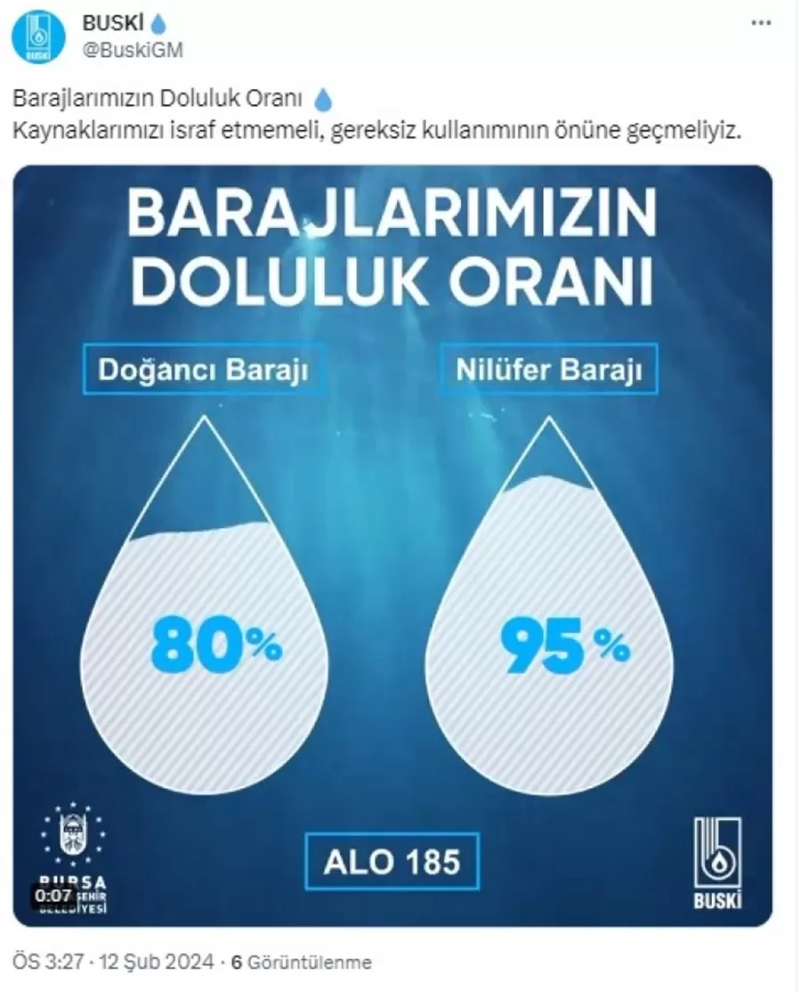 Özellikle kuraklık riskinin arttığı bu dönemde, Bursa'nın ana su kaynaklarının ciddi şekilde azaldığına dikkat çekilen açıklamada, vatandaşların su kullanımında israfı önlemesi ve gereksiz tüketimi engellemesi gerektiği belirtildi.