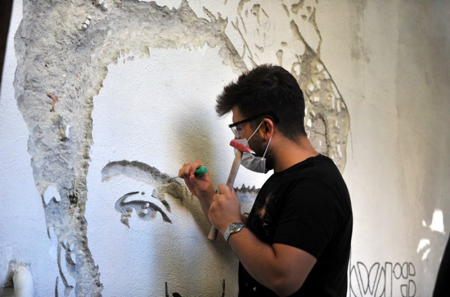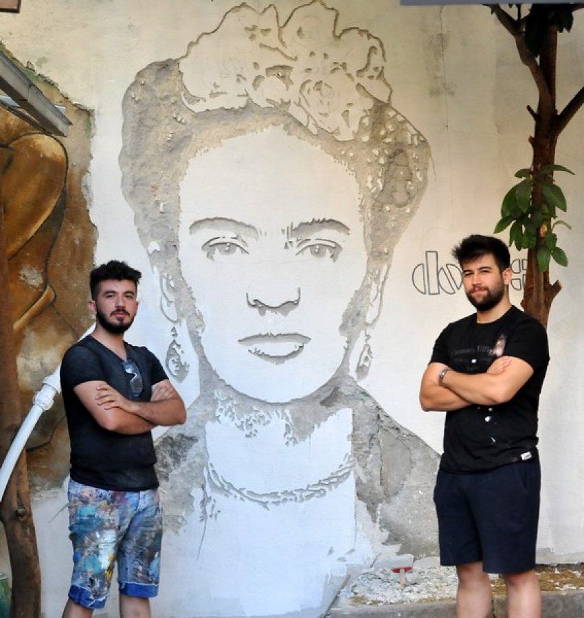 Bursa Uludağ Üniversitesi Resim Bölümü öğrencileri Adnan Çobanoğlu ve Emrah Kahveci, farklı yöntemler kullanarak, resim yapmaya karar verdi. İki öğrenci, boyayla resim yapmak yerine dünyada çok az örneği bulunan duvarı çekiç ve tornavida ile kazıyarak, resim yapma tekniği üzerine çalıştı. İkili daha sonra Meksikalı ünlü ressam Frida Kahlo'nun portresini bir kafenin bahçe duvarına yaptı.