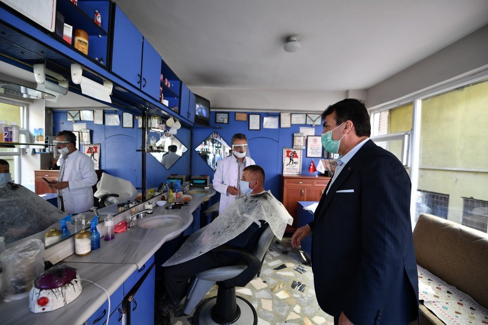 Dünyayı etkisi altına alan yeni tip korona virüs salgınına karşı İçişleri Bakanlığı'nın genelgesi ile faaliyetlerine 21 Mart tarihi itibariyle geçici olarak ara veren berber ve kuaförler, 11 Mayıs Pazartesi günüyle birlikte yeniden hizmete başladı. Osmangazi Belediye Başkanı Mustafa Dündar, 50 günün ardından kapılarını açan berber ve kuaför esnafını ziyaret etti. Esnafa maske dağıtan Başkan Dündar, hayırlı işler temennisinde bulundu. Salgın dolayısıyla hayatın birçok noktasında değişiklikler yaşadığımıza vurgu yapan Dündar, berber ve kuaför esnafının da virüs sebebiyle yeni bir döneme girdiğini ifade etti. Başkan Dündar, bu yeni sürece hazır olmaları açısından Osmangazi’de faaliyet gösteren yaklaşık bin 400 berber ve kuaför dükkanını dezenfekte ederek müşterilerin kullanımına hazır hale getirdiklerini söyledi.