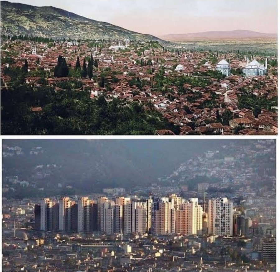 Gençliğimde her tarafı tarih kokan Bursa'da kalırken, o dönemde şehrin merkezinde bahçeler vardı. O bahçelerden çıkan şeftaliyi şu an bulamazsınız. Ama burası çok güzel, çok medeni bir şehirdir. Bütün eski toprak sınıfları sanayici oldu. Ama sanayi için bu kadar ovaya doğru genişlemenin hiçbir anlamı yok. Hâlâ TOKİ gökdelenleri yapılıyor. Bu çok ayıp bir şey. İlk seyyahlardan, ilk ressamlarımızın eserlerine kadar oluşan bir profil Bursa. Yeşil Bursa'ya böylesine çirkin yapılar yakışmıyor. Eski halini bildiğimin için şu an Bursa'ya üzülerek bakıyorum.