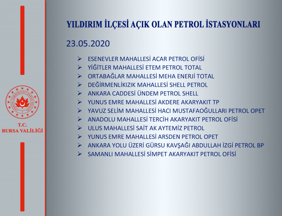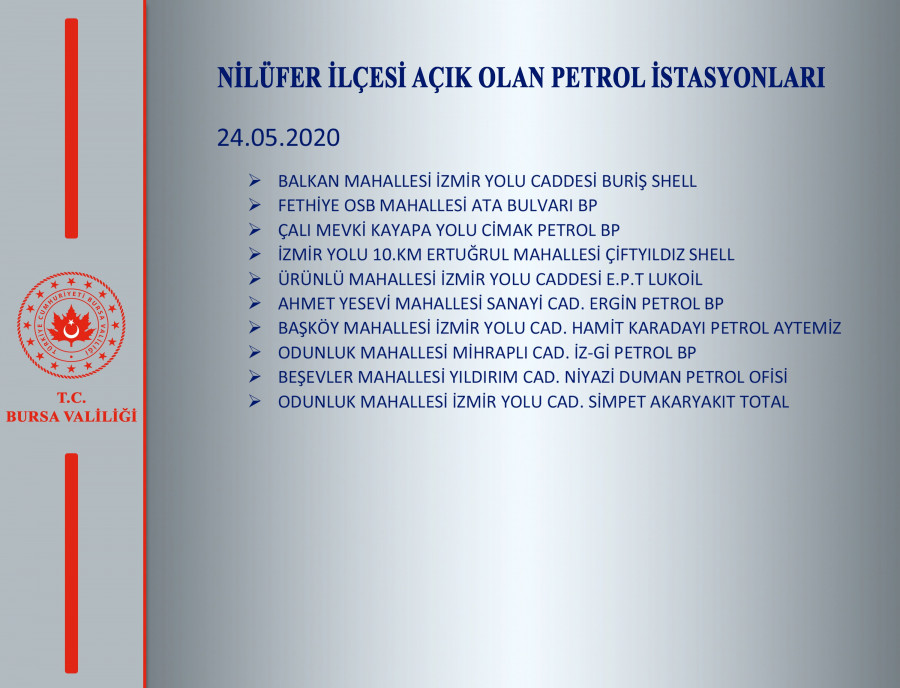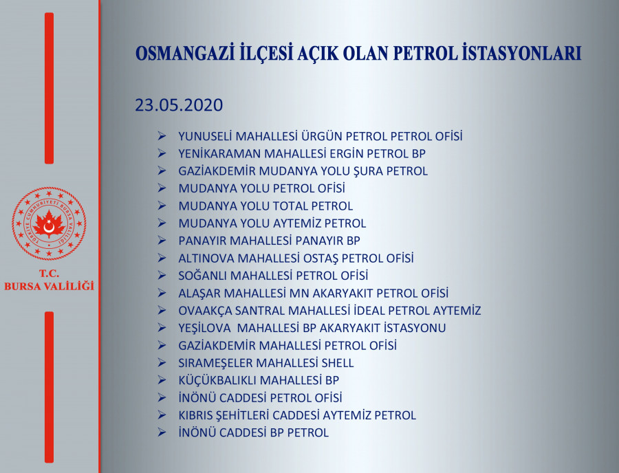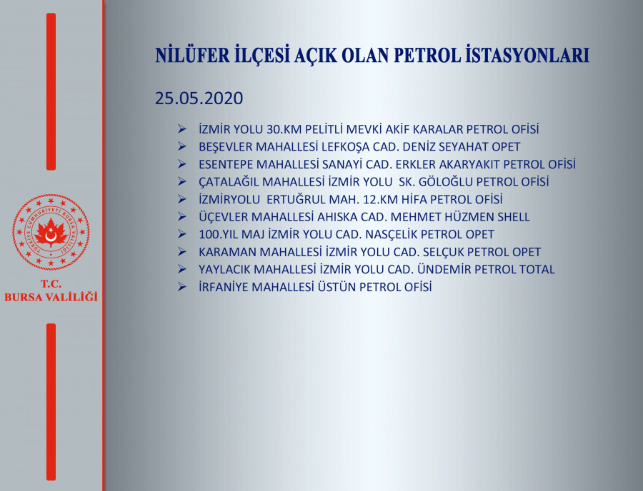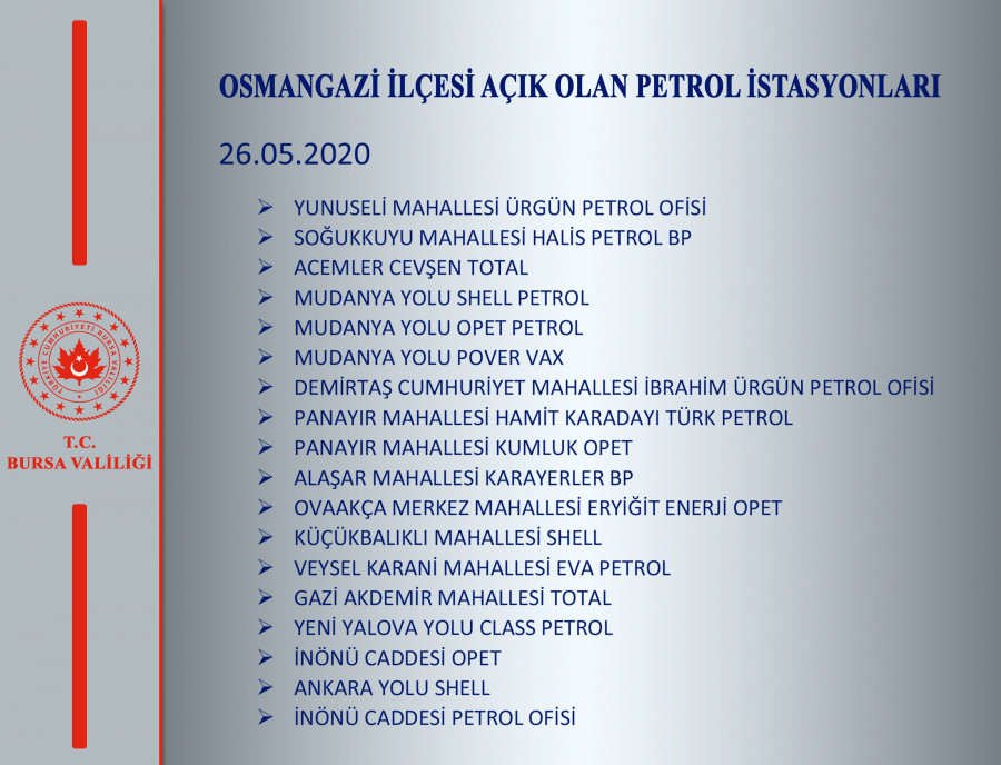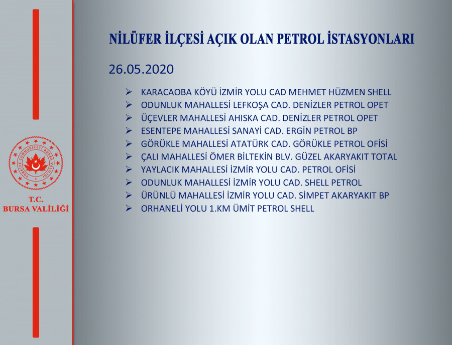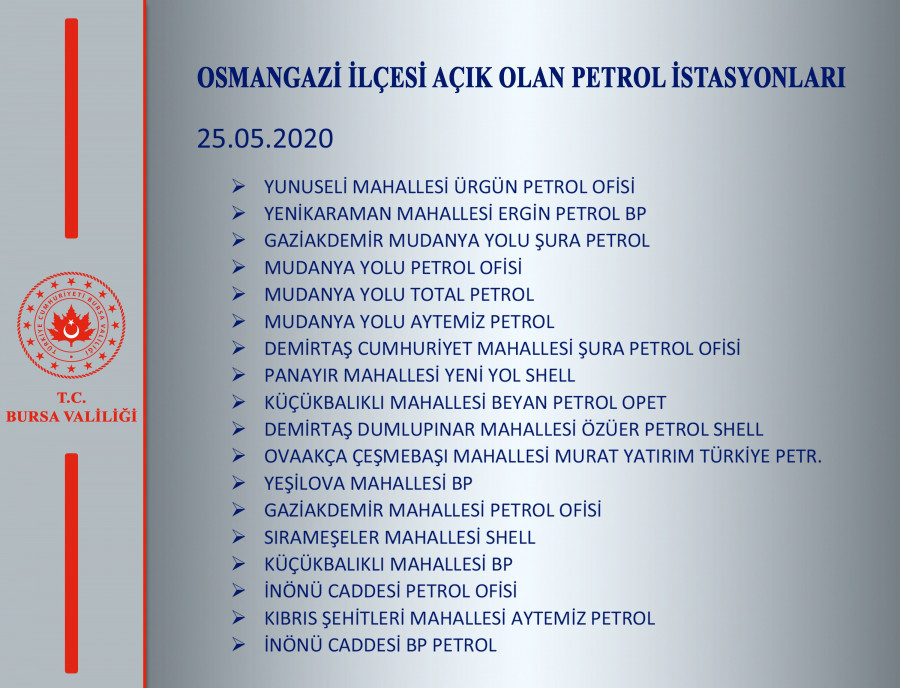 İşte Bursa'da kısıtlama günlerinde açık olacak petrol istasyonları