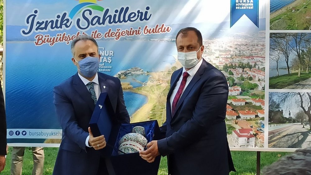 Bursa Büyükşehir Belediye Başkanı Alinur Aktaş ise, "Bursa olarak tarihi ve doğal güzellikler olarak Türkiye’nin en önemli şehirlerinden biriyiz. Eşsiz hazinelere sahibiz. İznik Türkiye’nin değil bütün insanlığın evrensel mirasıdır. Geçmişten bugüne gelen İznik Ayasofya Cami, Bazilikası, hanları ve hamamlarıyla evrensel bir mirastır. İznik altyapı ve üstyapı çalışmalarının ardından UNESCO dünya mirası listesine girmeye hazırdır. İnşallah 2021 ve sonrası İznik UNESCO şehri olarak misafirlerimizi burada ağırlarız. Pandemi başlamadan önce Güney Kore’nin en önemli iki acentası İznik’i listelerine almışlardı. Pandemi sonrası İznik’in tanıtılması için elimizden ne geliyorsa yapacağız. Şehrimiz 267 kilometre kıyısı olan bir şehir tüm kıyılarımızda sahil düzenleme çalışması gerçekleştirdik. Toplamda 70 milyonluk bir harcama yaptık. 2017 başında başlayıp 26 Mart tarihinde İznik’teki bu çalışmamızı tamamladık. 19 milyonluk proje alanı 3,5 kilometre doğal yürüyüş alanı 11 adet çocuk parkı tuvaletler ve peyzaj alanlarıyla gerçekten çekim merkezi haline geldi. Bu projenin başlatılmasında katkısı olan tüm eski belediye başkanlarına ve şimdiki İznik Belediye Başkanı Mehmet Kağan Usta’ya teşekkür ediyorum” dedi.