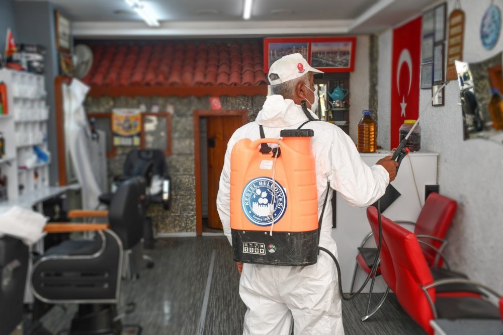 Kestel Belediyesi'ne bağlı ekipler, ilçedeki tüm işletmeleri dezenfekte ederek kuaför ve berberlerin müşterilerine daha hijyenik bir ortamda hizmet vermesine destekte bulundu. Ayrıca Zabıta Müdürlüğü ekipleri, işyerlerinin temizliği, dezenfektan ya da kolonyaların bulundurulması, maske takılması, sosyal mesafeye uyulması, randevu usulü çalışılması, tek kullanımlık havluların tercih edilmesi gibi konularla denetim gerçekleştirerek, ilgili esnafa bilgilendirme yapıyor.