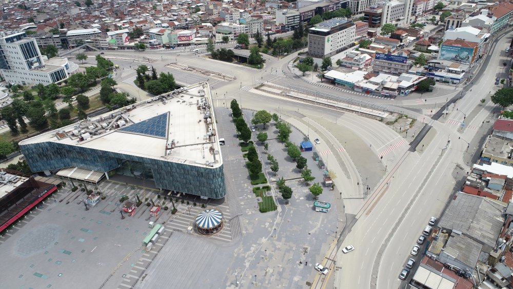 2 günlük kısıtlamanın son gününde de sokaklar boş kaldı. Vatandaşların evlerinde kaldığı Bursa'da boş cadde ve sokaklar drone ile havadan görüntülendi. Şehrin göbeğindeki 15 Temmuz Demokrasi Meydanı, Kent Meydanı ve Altıparmak adeta sessizliğe büründü. Bursa'nın boş cadde ve sokakları havadan görüntülendi.
