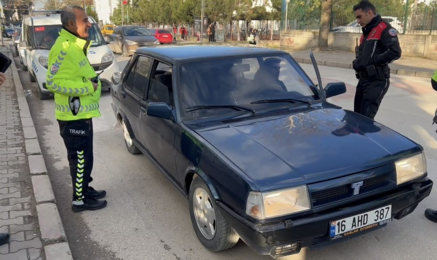 İnegöl Emniyet Müdürlüğü'ne bağlı Yunus ekipleri, okulların güvenliğini sağlamak için devriye attıkları sırada 16 AHD 387 plakalı otomobilin makas attığını fark etti.