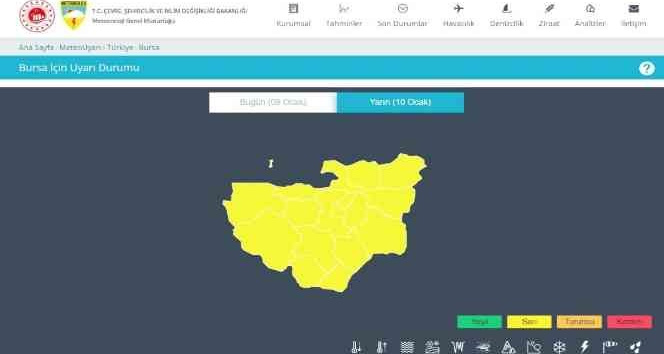 Meteoroloji Genel Müdürlüğü, yarın Bursa için sarı uyarıda bulundu.