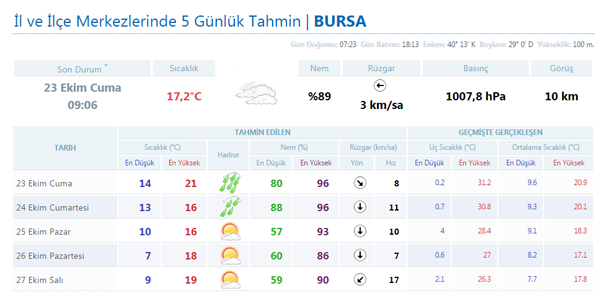 Hava sıcaklığının ülkemiz genelinde yağışla birlikte 3 ila 5 derece azalacağı tahmin ediliyor. Rüzgar, genellikle güney yönlerden, kuzeybatı kesimlerde kuzey ve kuzeydoğu yönlerden hafif, ara sıra orta kuvvette Marmara, Güney Ege kıyıları, Batı Akdeniz, İç Anadolu'nun güneyi ve Batı Karadeniz'in batı kıyılarında kuvvetli (30-60 km/saat), Marmara'nın kuzeydoğusu ve Antalya Körfezi ile Çanakkaleçevrelerinde yer yer kısa süreli fırtına şeklinde (50-70 km/saat) esmesi bekleniyor.