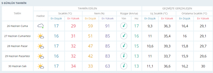 Cumartesi günü (YARIN) sıcaklık 31 derece, pazar günü ise 32 derece olarak tahmin ediliyor.
