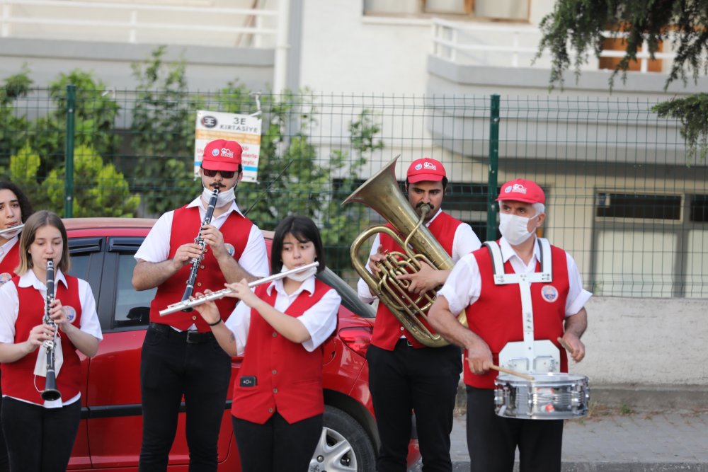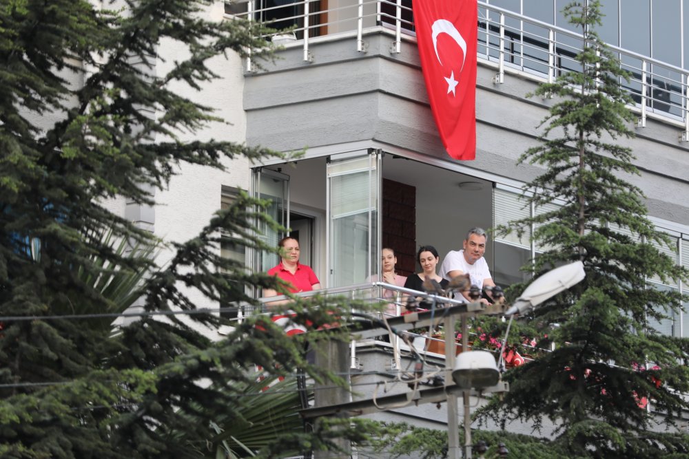 Mudanyalılar, belediye araçlarının ve Mudanya Bandosu’nun gün boyu çaldıkları marşlarla bayram coşkusuna ortak oldu. Saatler 19.19’u gösterdiğinde ise Mudanyalılar, balkon ve pencerelerde Atatürk’ün Gençliğe Hitabesi’ni hep bir ağızdan okudu.