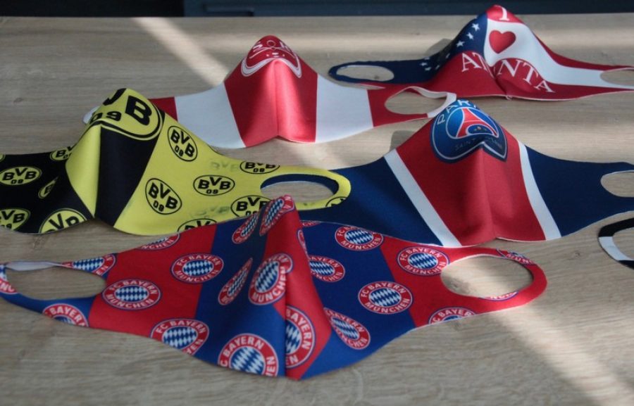Üzerlerinde takım armalarının yer aldığı farklı tasarımlı maskelerin numunelerini takımlara gönderen firma, üretime hazır bir şekilde gelecek siparişleri bekliyor.