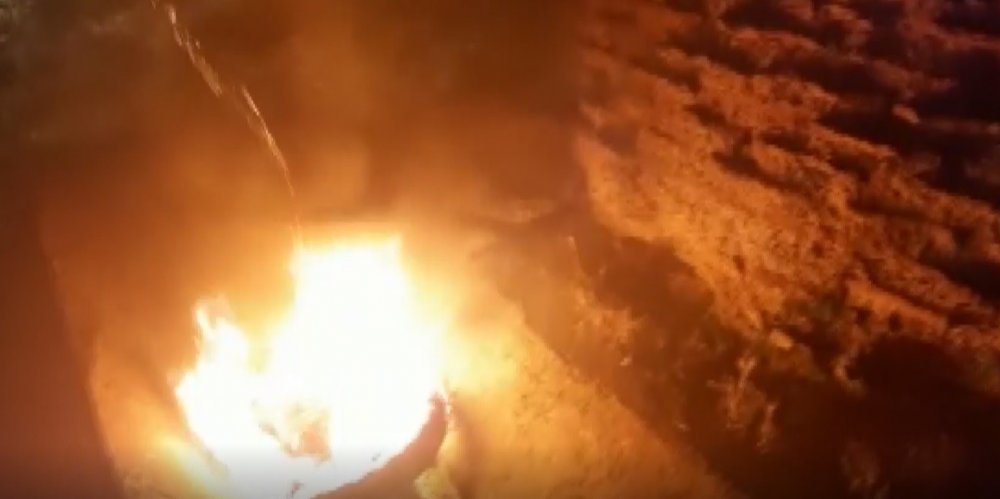 Gece 23.30 sıralarında meydana gelen olayda vatandaşların ihbarı üzerine olay yerine giden zabıta ve emniyet ekipleri gördükleri manzara karşısında şok oldular. Tarihi burcun dibinde yanan kamyon tekerleği ekipler tarafından kısa sürede söndürülürken, olayla ilgili soruşturma başlatıldı.