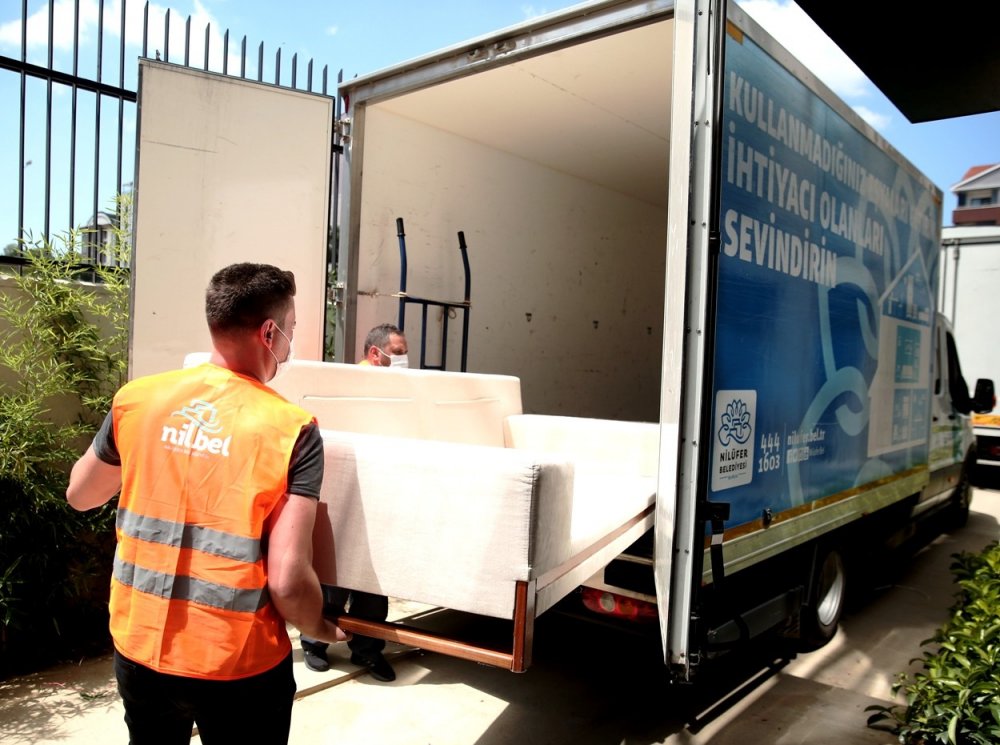 Sosyal sorumluluk projeleriyle Türkiye’ye örnek olan Nilüfer Belediyesi, ikinci el kullanılabilir eşyaların değerlendirilmesine de aracılık ediyor. Vatandaşların evlerinde kullanmadıkları eşyaları ücretsiz alan ekipler, 2019 yılında 519 adrese giderek, kullanılabilir eşyaları alıp ihtiyaç sahibi 239 eve taşıdı. Korona virüs salgını dolayısıyla hizmete bir süre ara veren Nilüfer Belediyesi, çalışmalarına tekrar başladı. Maske kullanımı ve hijyen kurallarına göre hareket eden ekipler, gelen talepleri karşılamak için hizmet veriyor. Evlerindeki fazla eşyaların alınmasını isteyen Nilüferliler, 444 16 03 numaralı telefondan ve www.nilufer.bel.tr adresinden başvuru yaparak kayıt oluşturabiliyor.