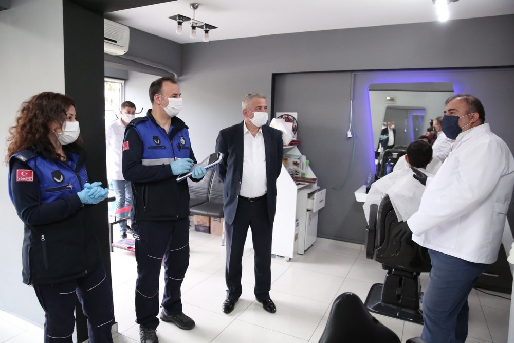 Korona virüs tedbirleri kapsamında geçici süreliğine kapatılan ve İçişleri Bakanlığı’nın genelgesi ile bugün yeniden faaliyet geçen berber, kuaför ve güzellik salonları Nilüfer Belediyesi Zabıta Müdürlüğü ekipleri tarafından denetlendi. Geçtiğimiz günlerde Nilüfer Belediyesi tarafından dezenfekte edilen işyerleri bu kez belirlenen şartları yerine getirmesi konusunda mercek altına alındı. Ekiplere denetimler sırasında Bursa Kuaförler Odası Başkanı Saliha Geçici ile Bursa Berberler Odası Başkan Vekili Mustafa Nezor da eşlik ederek genelge ve uygulamalar hakkında bilgilendirme yaptı.