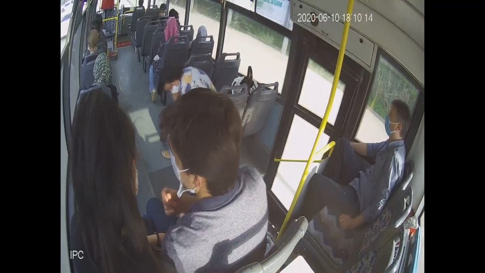 Seyir halinde bulunan otobüste kalp krizi geçirerek bayılan kadının hastaneye yetiştirilmesi için yaşanan panik kameralara saniye saniye yansıdı. Otobüs koltuğunda tek başına oturan kadının fenalaşmaya başladıktan sonra bayılarak yerde kaldığı ve diğer yolcuların hemen müdahale ettiği görüldü. Kalp krizi geçiren kadını hastaneye yetiştirmek için adeta zamanla yarışan otobüs şoförünün yoğun olan trafikte yolu açarak panik halinde hastaneye gidişi kameralar saniye saniye yansıdı.