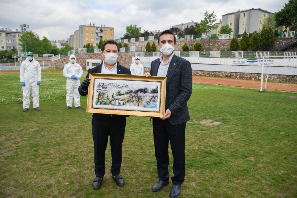 Kestel Belediye Başkanı Önder Tanır ise zor günlerden geçildiğine işaret ederek, “Bizler yerel yönetimler olarak fiziksel çevremizi temiz tutma yanında zihinsel olarak da insanları mutlu ve huzurlu hissettirmemiz gerekiyor. Bu noktada şehrimizin en önemli değerlerinden "Bursasporumuzu bu işin içine katabilir miyiz" düşüncesi oluştu. Yaptığımız bu davranış çok da güzel ses getirdi ve bir sinerji oluşturdu. Burada dezenfekte yapan arkadaşlarımız Bursaspor’un şampiyon kadrosunu yad etmek adına böyle bir şey gerçekleştirdik. Kulübümüzün tekrar Süper Lig’e çıkarak bizlere şampiyonluk yaşatmasını arzu ediyoruz. İnşallah bu günler geçecek ve tekrar maçları stadyumlarda birlikte izleyeceğiz” diye konuştu.