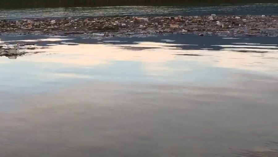 Tarımsal ilaçların kutuları, kesilen hayvanların iç organları, pet şişeler ve çevreyi kirleten çöpler gölün yüzeyinde gözle görülebiliyor.