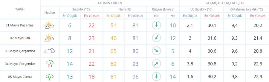 5 GÜNLÜK HAVA TAHMİNİ