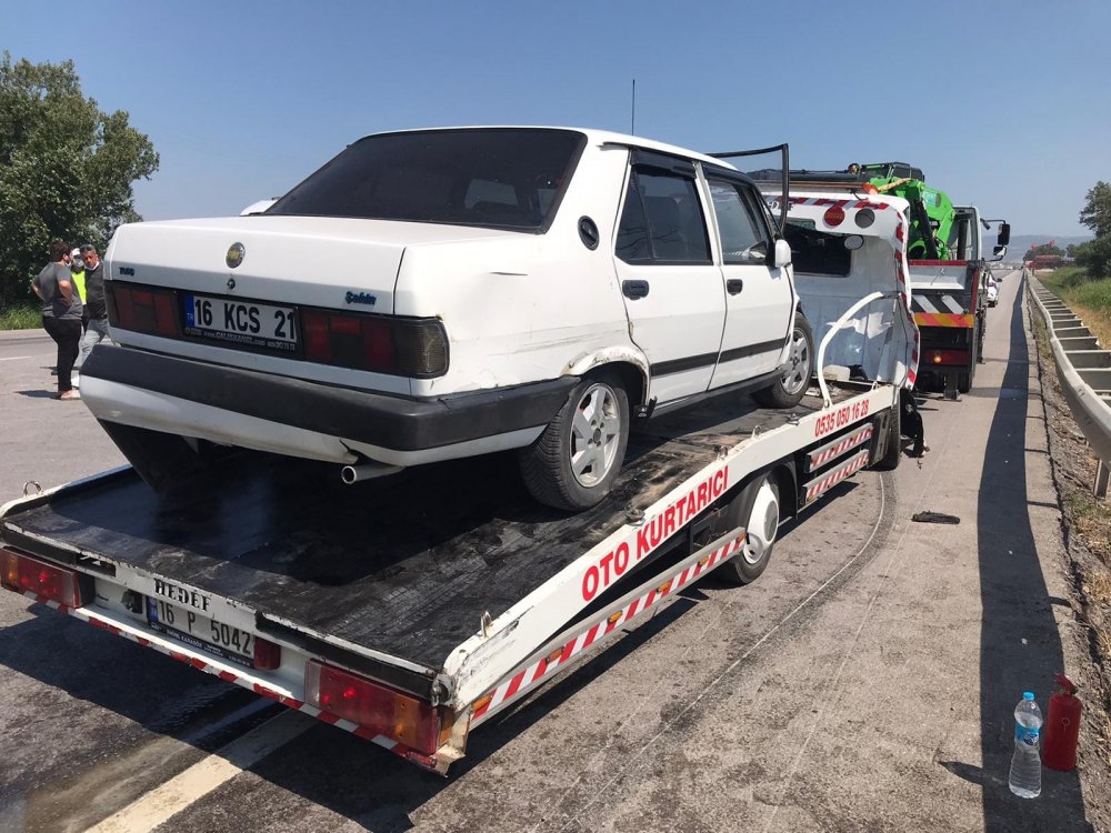 Kazayı; tır ve çekici sürücüsü hafif sıyrıklarla atlatırken, çekicinin üzerinde bulunan hususi otomobil sürücüsü yan koltukta sıkıştı. İtfaiye ekiplerinin çalışmaları sonucu kısa sürede sıkıştığı yerden çıkarılan araç sürücüsü olay yerine gelen sağlık ekipleri tarafından ayakta tedavi edilirken, sağlık durumunun iyi olduğu öğrenildi. Kaza sonucu Bursa-İzmir yolu Bursa istikameti yarım saat süreyle trafiğe kapandı. Kazaya karışan araçlar yoldan çekilip, yol tekrar trafiğe açılırken polis ekipleri kazayla ilgili tahkikat başlattı.