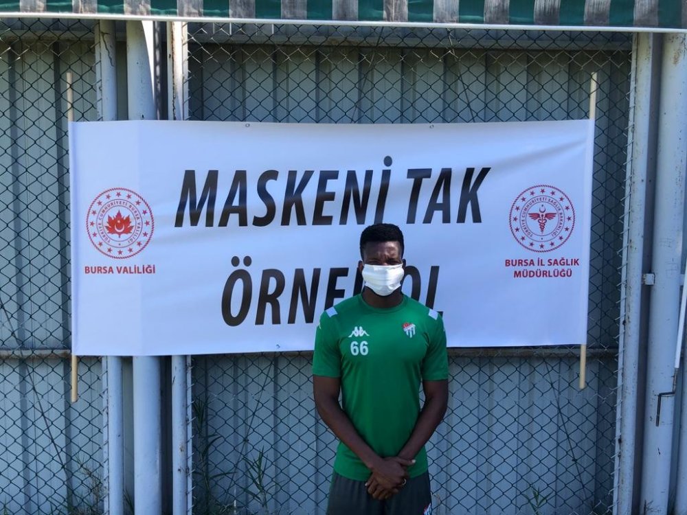 Antrenman öncesi hala etkisini sürdüren salgın için kamera karşısına geçen Bursasporlu futbolcular ise 'Şimdi ayrıyız çünkü aramıza koyduğumuz mesafe bizi koruyacak', 'Maske takmak, korona virüs kadar can sıkıcı değildir', 'Maske takmak, korona virüs kadar nefessiz bırakmaz' diyerek, maske, mesafe, temizlik konusunda taraftarlarını ve tüm Bursalıları kurallara uymaya davet etti.
