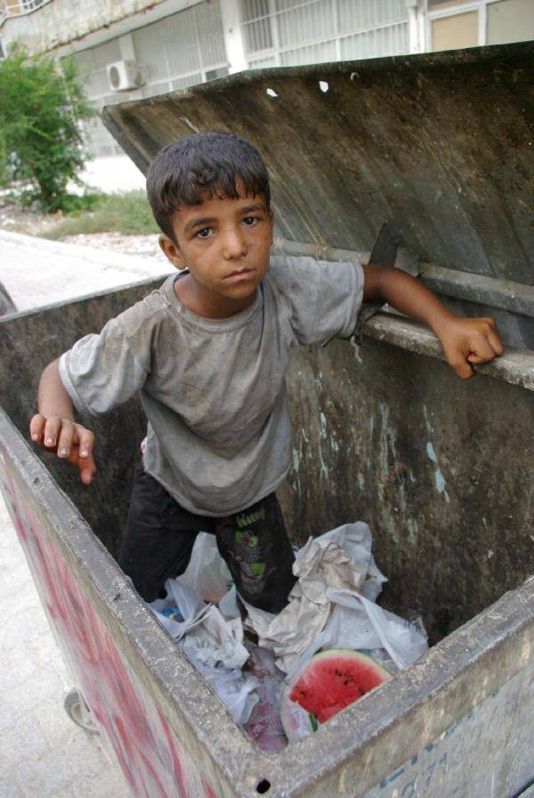 Çocuklar ekmeklerini çöpten çıkartıyor