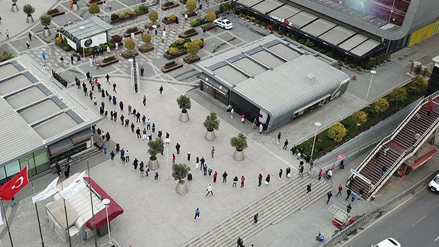 Corona virüsle mücadele kapsamında Ramazan Bayramı'nı kapsayan 4 gün süren sokağa çıkma kısıtlamasının ardından birçok kişi Esenyurt'ta bulunan bir alışveriş merkezine gitti. Alışveriş merkezinin önünde oluşan uzun kuyruklar havadan fotoğraflandı.