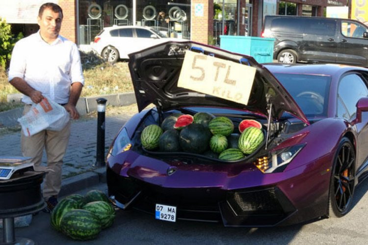 Otomobilinin ön bagajına koyduğu karpuzları tanesi 5 liradan sattığını duyuran kişi çevredeki vatandaşların ilgisini çekti.