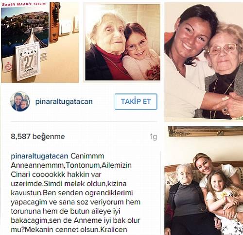 Instagram hesabından duygularını paylaşan oyuncu, şunları yazdı, "Şimdi melek oldun, kızına kavuştun. Ben senden öğrendiklerimi yapacağım ve sana söz veriyorum hem torununa hem de tüm aileye iyi bakacağım. "
