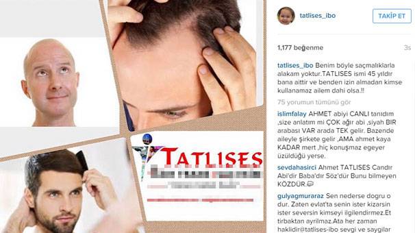 Tatlıses, saç ektirme markasının afişini paylaşarak şu notu düştü; "Benim böyle saçmalıklarla alakam yoktur. Tatlıses ismi 45 yıldır bana aittir ve benden izin almadan kimse kullanamaz ailem dahi olsa!!"
