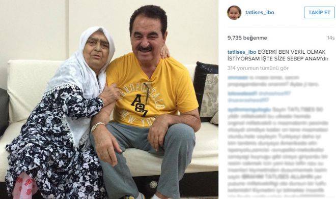 Tatlıses, instagramdan annesiyle birlikte aynı karede yer aldığı fotoğrafa, 'EĞERKİ BEN VEKİL OLMAK İSTİYORSAM İŞTE SİZE SEBEP ANAM'dır' ifadelerine yer verdi.