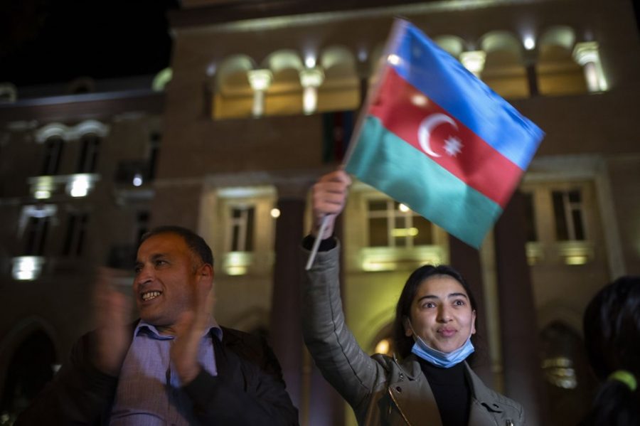 Azerbaycanlılar, Ermenistan'ın Dağlık Karabağ'daki işgalini sonlandıran bildirinin imzalanmasını meydanlarda kutluyor.