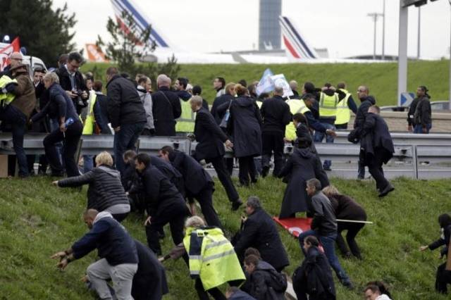 Air France Merkez İşleri Konseyi toplantısı yüz kadar protestocunun baskınına uğradı. Yöneticiler linç edilmek istendi. Protesto için Air France'ın Paris Charles de Gaulle Havalimanı'ndaki merkezine gelen çalışanlar slogan atmaya başladı. Bu sırada binaya gelen iki havayolu yöneticisine protestocular laf attı. Sözlü tartışmanın ardından bir anda ortalık karıştı. Air France İnsan Kaynakları başkanı ve Uzun mesafeli uçuşlar Müdürü protestocuların saldırısına uğradı.