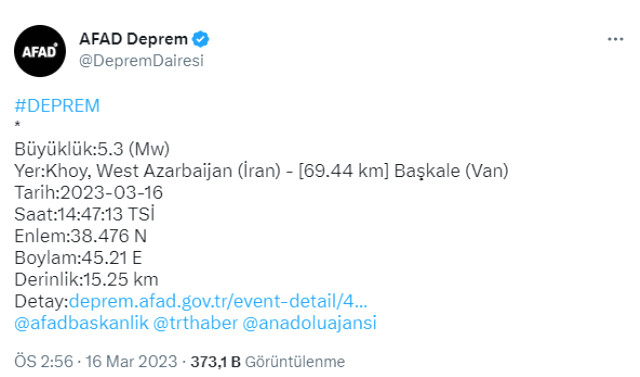 DEPREMİN BÜYÜKLÜĞÜ 5.1 OLARAK AÇIKLANDI