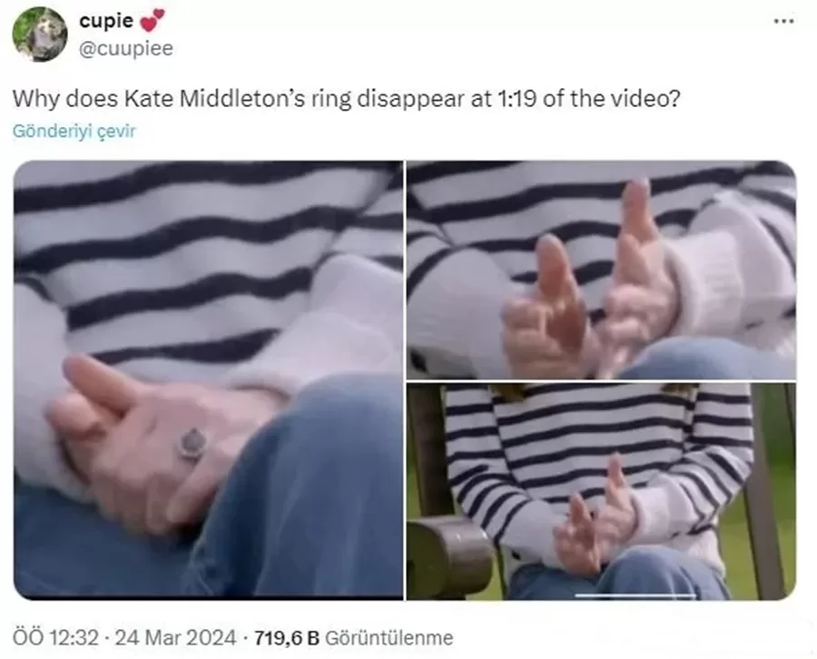 Ancak, bu videoya yapılan yapay zeka iddiası büyük tartışmalara yol açtı. Prenses Middleton, ocak ayında geçirdiği karın ameliyatının ardından kanser olduğunu ve önleyici kemoterapi gördüğünü duyurdu. Ancak paylaşılan videoya pek çok kişi şüpheyle yaklaştı. Sosyal medyada ortaya atılan yeni iddia ise görüntülerin yapay zeka ile üretildiği yönünde.