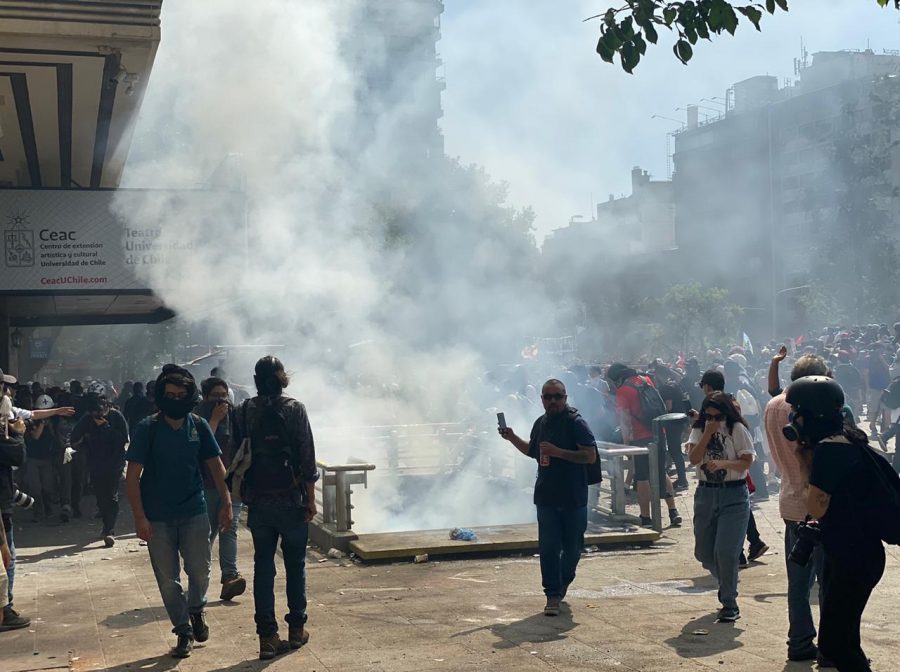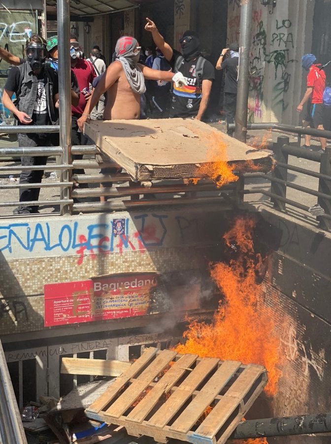 Olayların en şiddetli yaşandığı başkent, Santiago'da yaşayan Türk iş insanı Yusufcan Sarıkaya'nın kamerasına yansıyan görüntülerde, eylemcilerin bir akaryakıt istasyonundaki marketi ve sokak arasındaki bir dükkanı yağmaladıkları, yine sokakta bulunan bir otomobili ateşe verdikleri görüldü. Şili Kızılayı'nın ise güvenlik güçleri tarafından plastik mermiyle vurularak yaralanan eylemcilere müdahale ettikleri görüldü.