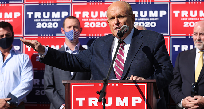 Cumhuriyetçilerin adayı Donald Trump'ın avukatı Rudy Giuliani Philadelphia'da basın toplantısı düzenledi.