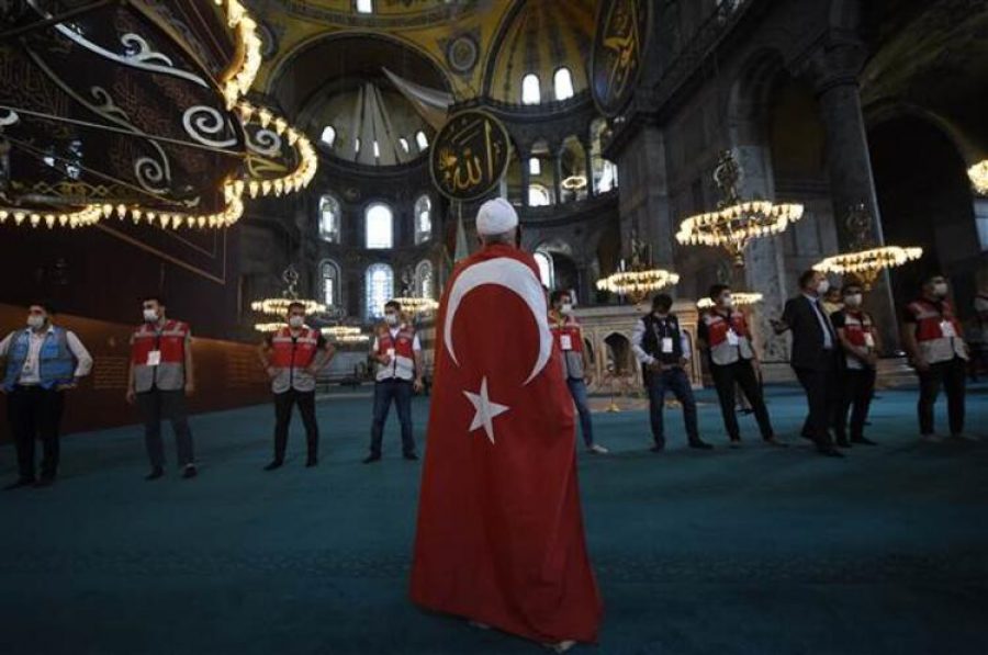 Türk milletinin iradesi doğrultusunda ibadete açılan Ayasofya-ı Kebir Camii-i Şerifi, topraklarımızdaki diğer kültür varlıklarımız gibi Türkiye'ye ait olup, sonsuza kadar mülkiyetimizde ve korumamızda olacaktır.