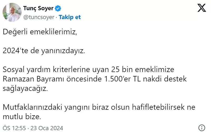 Hükümetin yanısıra belediyelerde emekliye müjdeli haber verecek. İlk olarak İzmir Büyükşehir Belediyesi 25 bin emekliye 1.500 TL bayram ikramiyesi yatıracağını duyurdu.
