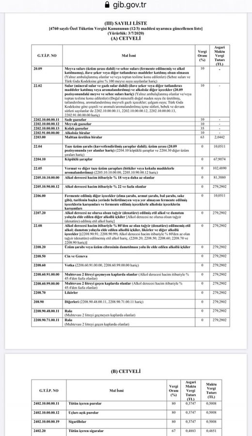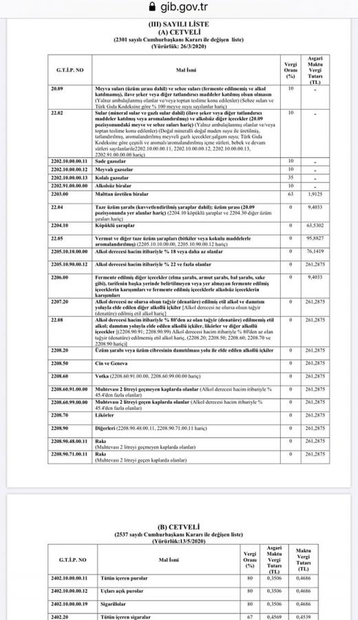 "Az önce alkol ve tütün ürünlerinin maktu ÖTV tutarlarında güncellemeye gidilmiştir. Bira, rakı ve sigaraların maktu ÖTV tutarları %6,89 oranında artırılmıştır."