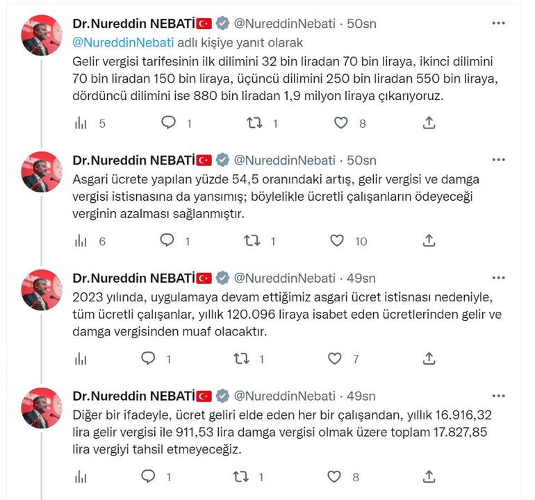 Hazine ve Maliye Bakanı Nurettin Nebati 2023 yılı vergi dilimlerine dair açıklamalarda bulundu.