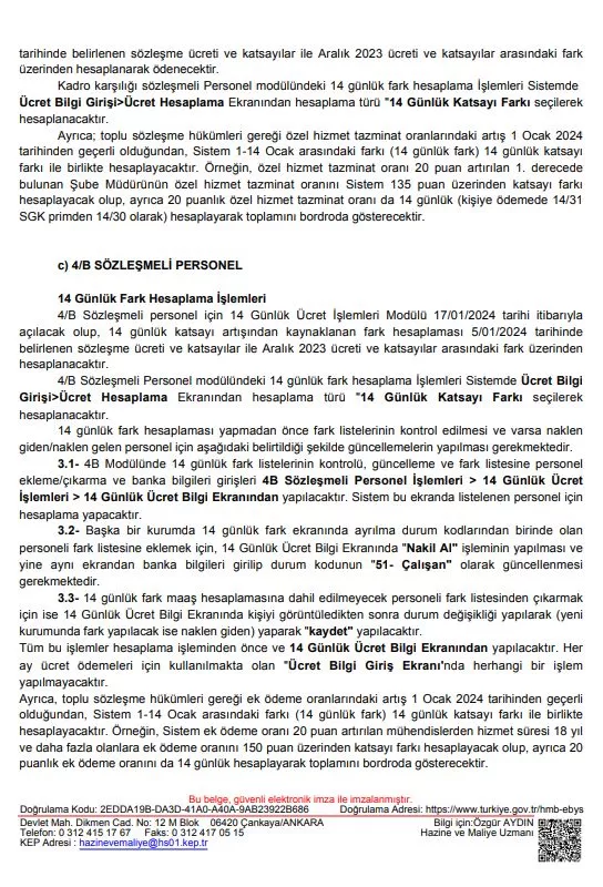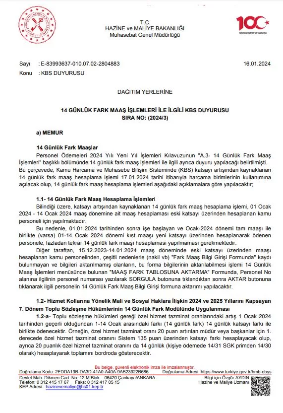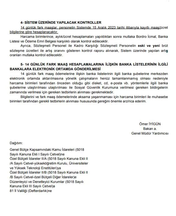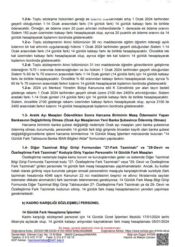 Hazine ve Maliye Bakanlığı Genel müdürlüğü, tüm birimlere resmi yazı yazarak "14 günlük maaş farkları" hakkında duyuru yayınladı. Söz konusu duyuru da maaşları eksik yada farklı yatanlara açıklama yapıldı. İşte o açıklama şu şekilde: