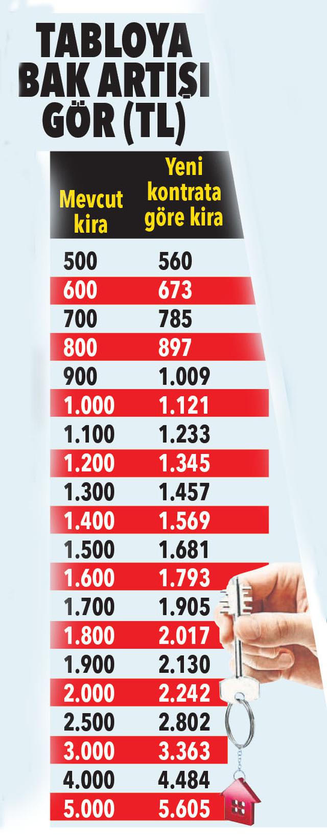 Bu uygulama 18 Ocak 2019’da çıkan torba yasa ile değişmişti. Bu tarihten itibaren kira artışının ÜFE yerine 12 aylık ortalama Tüketici Fiyat Endeksi’ne (TÜFE) göre belirlenmesi hükme bağlandı. Türkiye İstatistik Kurumu (TÜİK) dün enflasyon oranlarını açıkladı. Buna göre; 12 aylık ortalama TÜFE yüzde 12.10 oldu. Yani 1.000 liralık kirada 121 liralık bir artış olacak. İş yerlerinde enflasyona göre kira artışı uygulamasına 1 Temmuz 2020’de geçilecek.